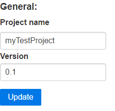 Придумать и задать название проекта, версию и нажать Update